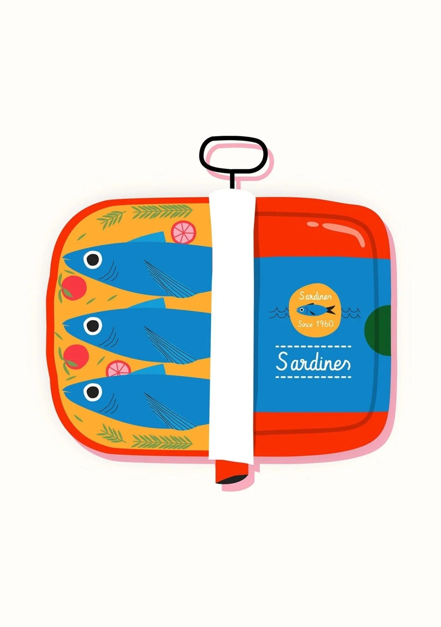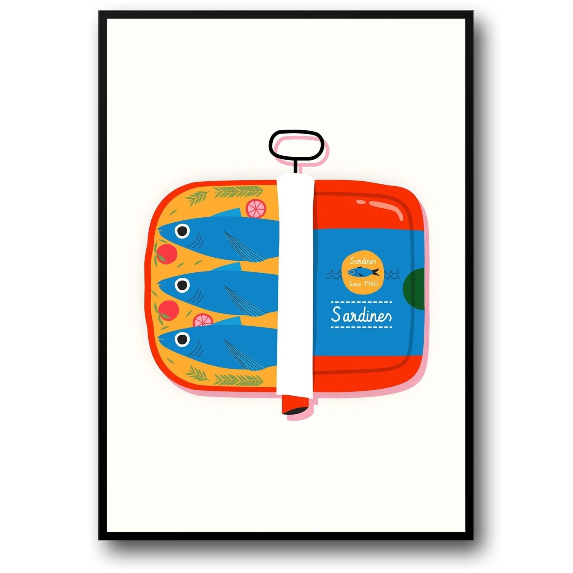 Sardinen-Poster | Kulinarische Illustration aus dem Jahr 1960 | Wandkunst für die Heimdekoration | Küchendruck