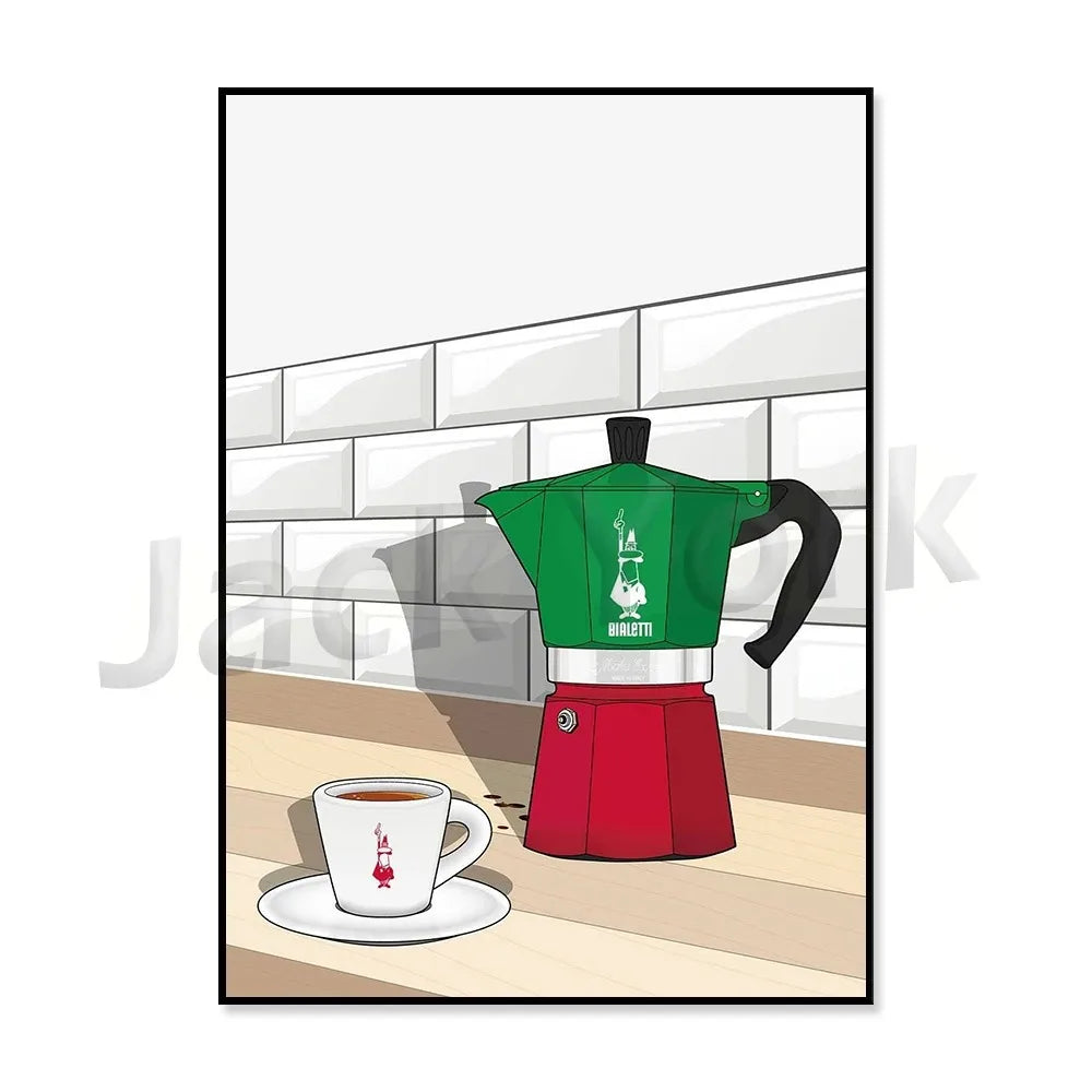 Bialetti Vietri Moka Pot Poster | Italian Kitchen Decor | Espresso Maker Art | Coffee Artwork Display