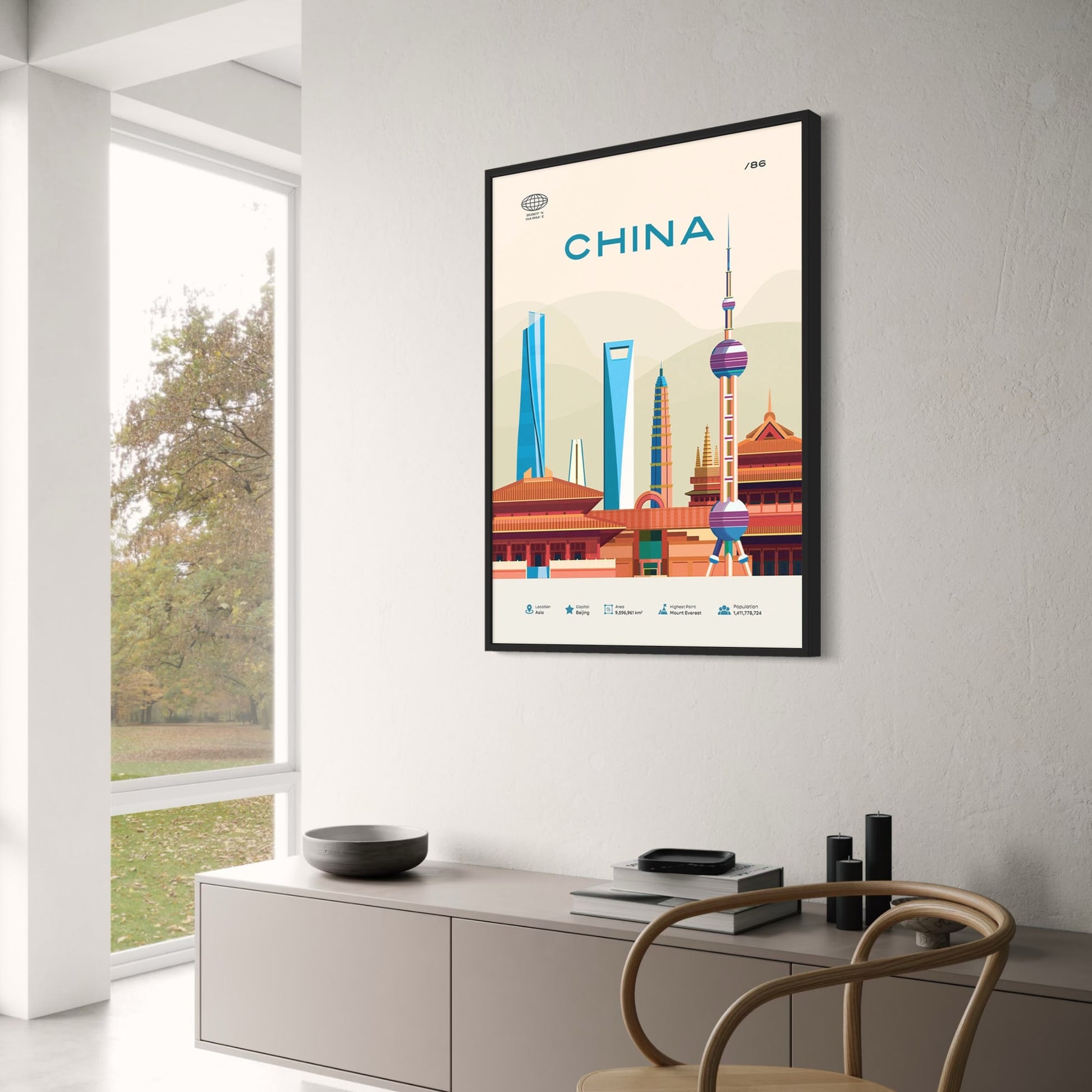China Travel Poster | Beijing Skyline and Cultural Landmarks | Modern Urban Art Print | Decorative Wall Poster